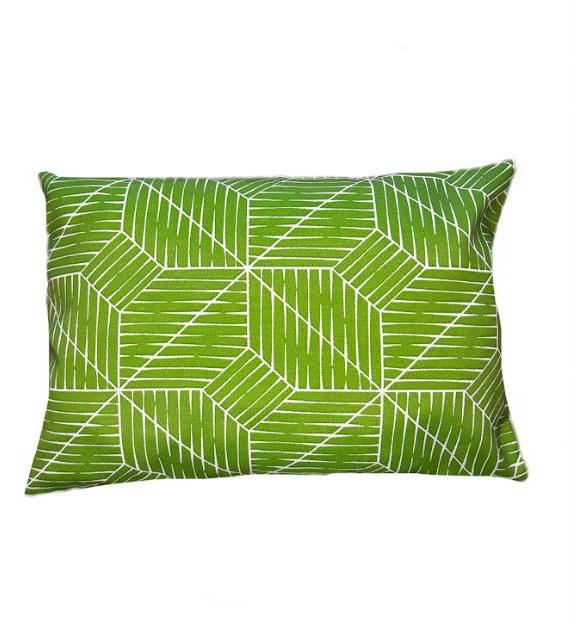 Pillow Cover Lumbar Lime Bright Green Calypso Citron White Lines Geometric Pattern, 12x20 inches, Outdoor and Indoor