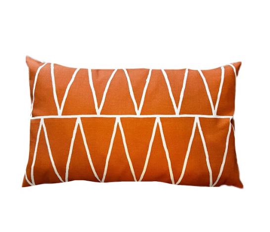 Pillow Cover Lumbar Orange Deep Papaya Terrain Geometric Pattern with White Lines, 12x20 inches, Outdoor and Indoor