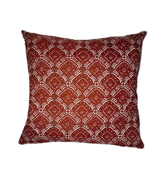 Pillow Cover Red Clay Brick Red Maroon Scarlet with White Lace Christmas Holiday Pattern, 18x18 inches, Outdoor and Indoor