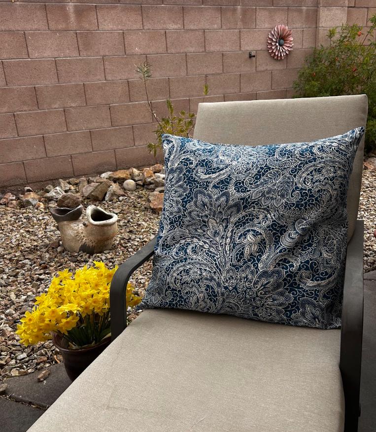Pillow Cover Navy Blue Indigo Paisley Cobalt Lapis, 26x26 inches, Outdoor and Indoor