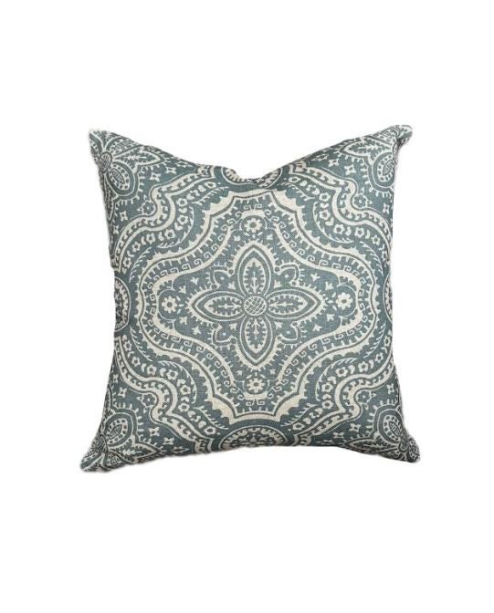 Pillow Cover Blue Teal Sky Cotton White Pearl Paisley Beige Cream Back, 16x16 inches Outdoor and Indoor