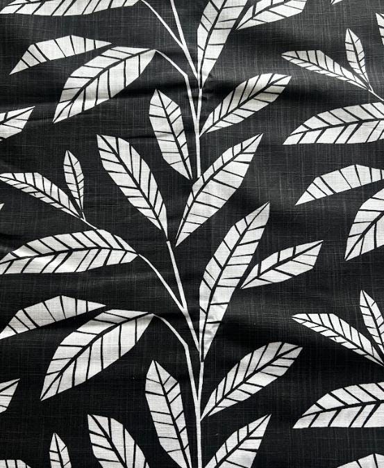Fabric By the Yard Black White Geometric Leaf Plant Print