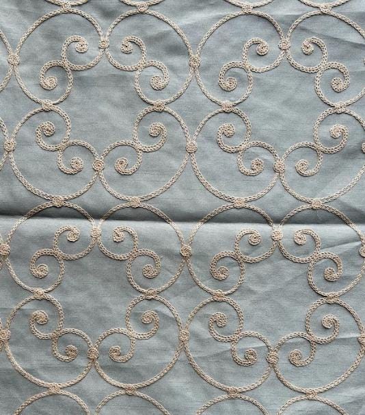 Fabric By the Yard Blue Teal Rope Scrolls Yellow Gold Print