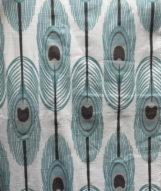 Fabric By the Yard Blue Teal Brown Peacock Feather White Print