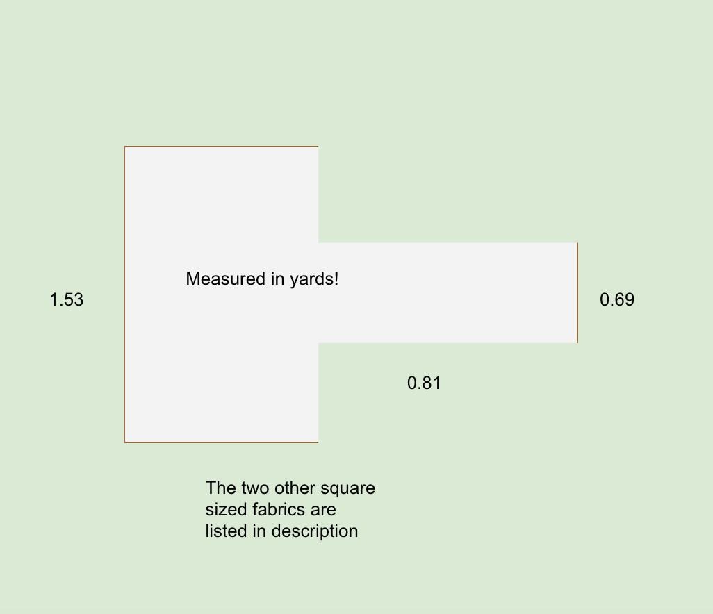 There are three different fabric sizes. The fabric that is square sized is 1.53 yards x 2.11 yards (55x76 inches), and 1.06x1.44 yards (38x52 inches), the other size in listed in images.