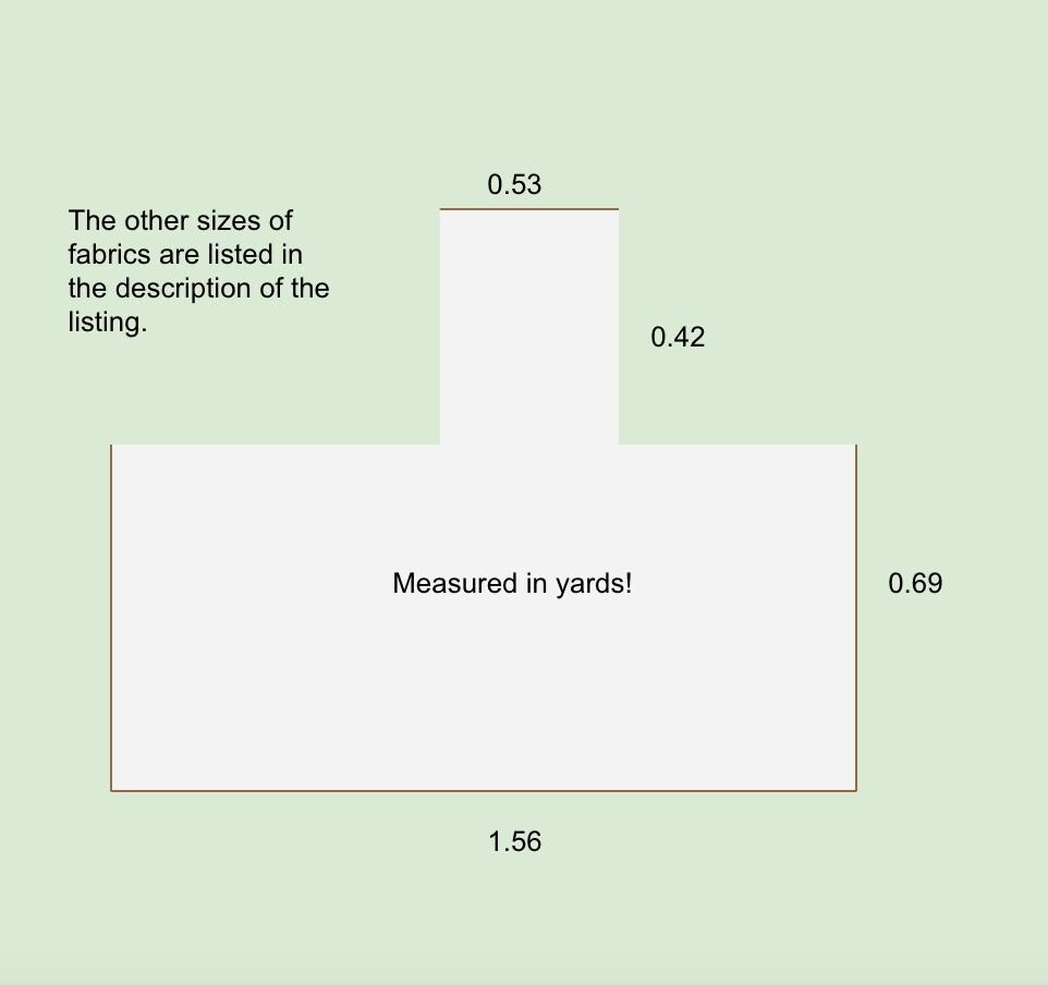 There are 3 sizes of fabrics. The two square sized are 1.33x1.56 yards (48x56 inches) and 1.39x1.56 yards (50x56 inches). The third size is shown in images.