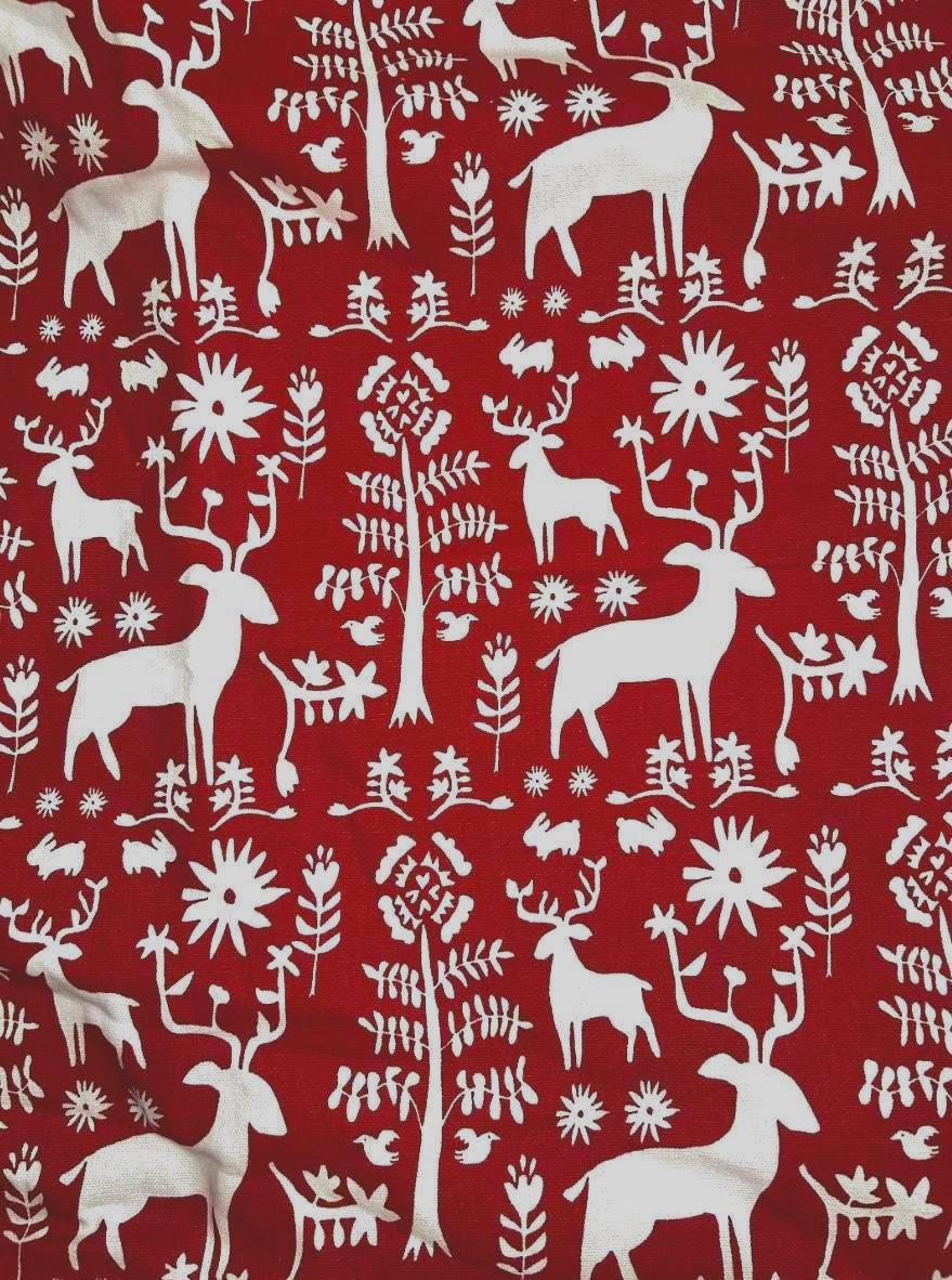 Fabric By the Yard Red Cherry Holiday Christmas Deer Pine Print White Ivory
