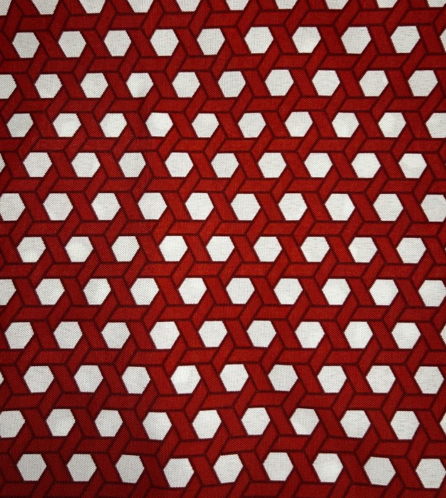 Fabric By the Yard Red Deep Cherry White Ivory Geometric Pattern