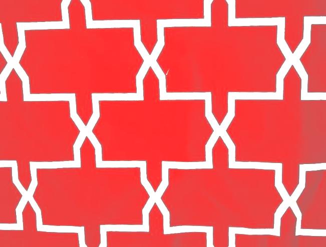 Fabric By the Yard Red Deep Cherry White Ivory Geometric Pattern