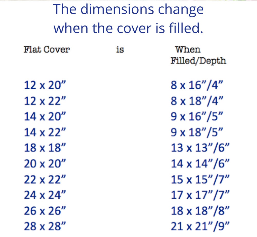 ** ~Note that my listing titles refer to the pillow form size and NOT the pillow cover size. TO ENSURE A PROFESSIONAL FIT, I MAKE MY COVERS SLIGHTLY SMALLER (APPROXIMATELY 1” SMALLER) THAN THE SIZE STATED. Note also that 14" covers and lumbar pillow covers are closer to the actual size of the pillow form because this works best for these particular pillows. ****PLEASE KEEP THESE FACTS IN MIND WHEN ORDERING**** You may contact me if your specific needs call for a custom size. I make my 18x18 pillow covers so that they are 17x17 to give the pillow the poof. They then fit an 18x18 pillow form purchased from the store like a dream.
